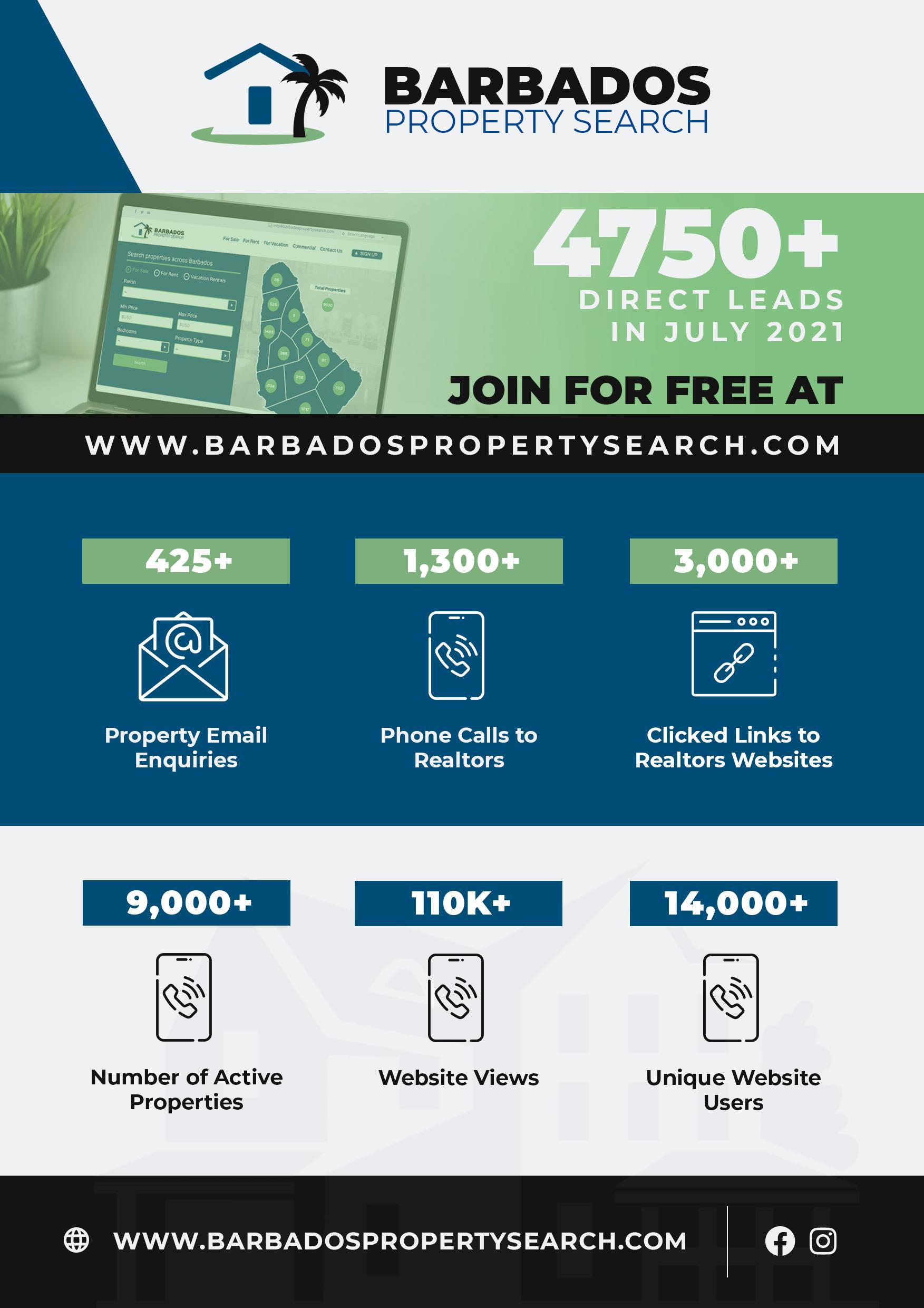Barbados Property Search stats for July 2021