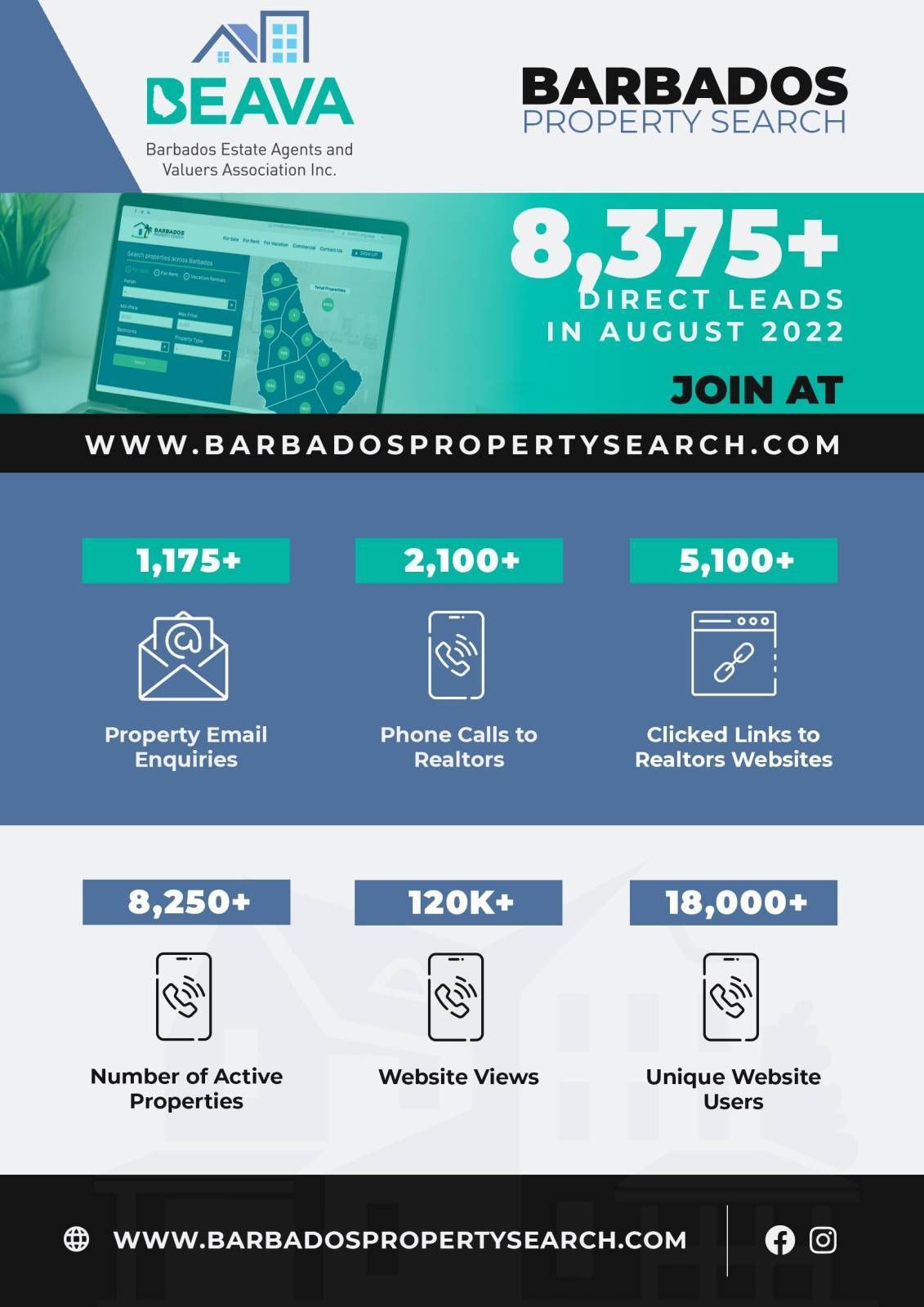 Barbados Property Search stats for August 2022
