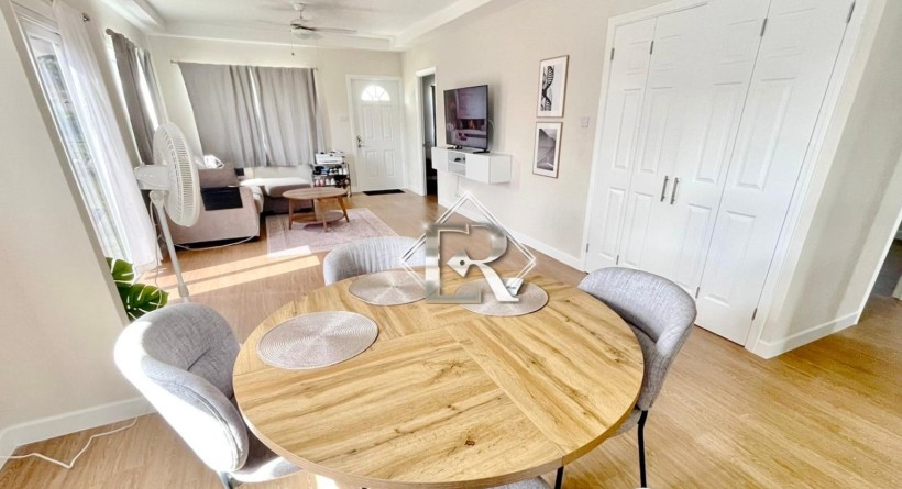This fully furnished 3-bedroom, 2-bathroom home is located in the highly sought-after Villages at Coverley, Christ Church, and is available for rent from June 1st at US $3,250 per month. Designed for comfortable modern living, the property features an open-plan layout with a well-appointed kitchen, complete with essential appliances and a convenient washer/dryer combo tucked into a dedicated laundry nook.
