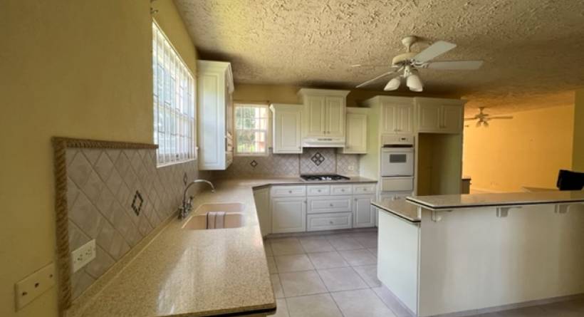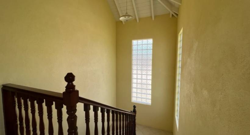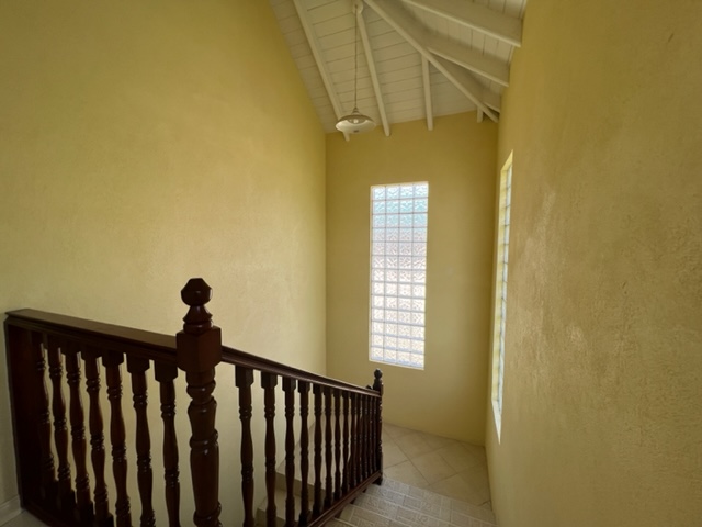 The three additional bedrooms and two bathrooms are also upstairs, with the primary bedroom being ensuite, with walk in closet and a jacuzzi tub and standalone shower, plus a small balcony off the bedroom. The other two bedrooms are a decent size and one of them also has a walk-in closet. All bedrooms are air-conditioned and there are security grills throughout. With an asking price of BBD$2,700 per month, this property is a great deal.