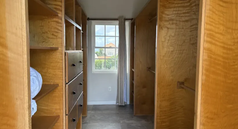 The upper level has 2 bedrooms that share a bathroom and a lovely primary en suite bedroom with a large walk-in closet. The primary bedroom also enjoys a private balcony overlooking the pool and garden. All of the bedrooms have air condition, ceiling fans, built in cupboards and a television for ease and comfort.