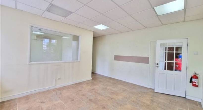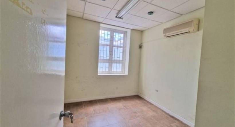 Office 2 of The Thomas Pierce Building is located on the ground floor of this purpose-built office complex on Lower Collymore Rock Road. The property can be accessed on foot from the main road, or via vehicle behind the National Insurance Building via vehicle. There is an outer security door to let you into the building. The space comprises of 551 sq. ft. which is split into a large central space, a smaller office space, a kitchenette with a storage area and two toilets. The floors are tiled, and the central space and the individual office space have air-conditioning. The office is allocated 3 parking spaces. The building is secure as there are security cameras on the outside of the building, and there are security grills on the windows. The monthly fee includes the communal skip. The property also has a water tank. Not suitable for retail. Rent is $2,266 inclusive of VAT. The office space will be repainted, and minor repairs done for the new occupants.