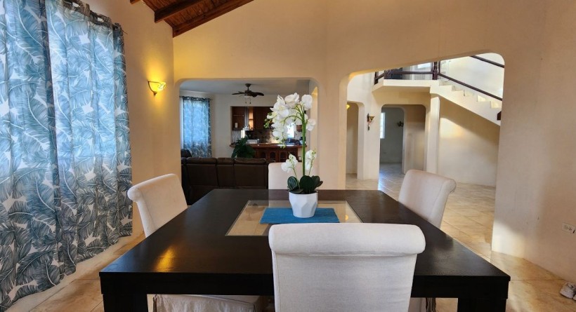 This two-storey, open plan home is located in a quiet neighborhood, offering cool Atlantic breezes and panoramic views toward Ragged Point Lighthouse.