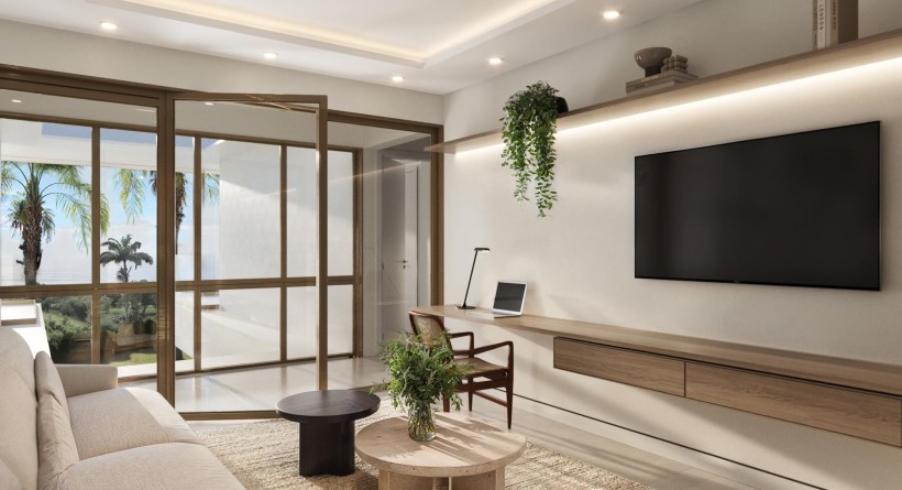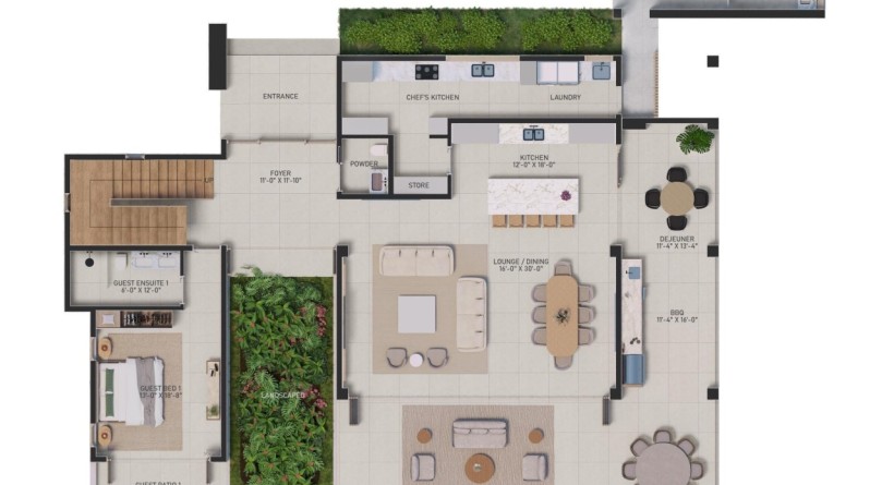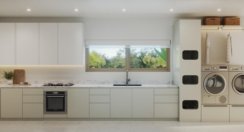 The interior aesthetic is clean and considered. A show kitchen will anchor the main living space, supported by a separate chefs kitchen, utility room, and staff bathroomallowing for both entertaining and day-to-day functionality. Upstairs, four private suites will each open onto their own terrace, offering quiet moments of retreat, alongside a flexible space for work or slow evenings in. This turnkey, fixed-price residence is designed for effortless living. Once complete, it will feature hurricane-impact glazing, integrated smart wiring, a carport, and a four-seat buggy, with the option for solar integration over time.