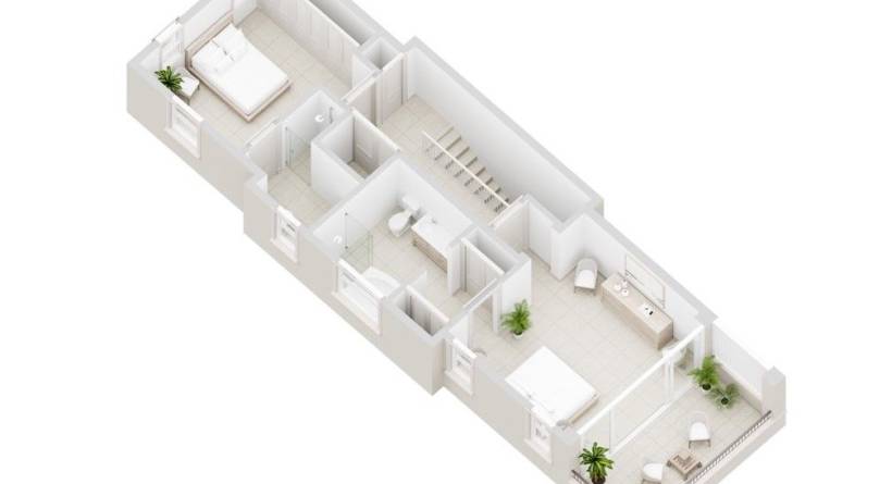 The upper level comprises two bedrooms both of which are easily accessed from the landing affording full privacy. The master bedroom flows through to a private veranda with stunning unobstructed sea and golf views. There is space for a work-at-home desk, large wardrobe and in the master bathroom provides a double vanity, bathtub, and shower. The property features luxury finishes and appliances throughout.