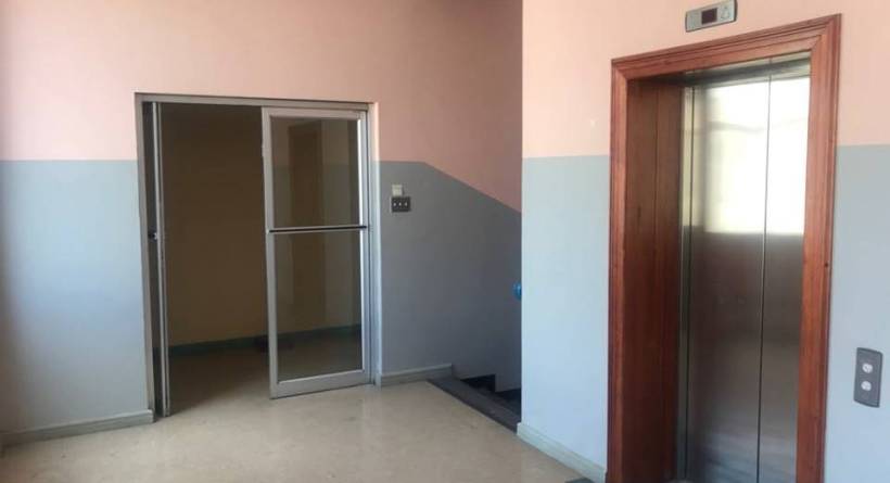It has three floors which are divided into two sections on each level with Elevator positioned in the middle.