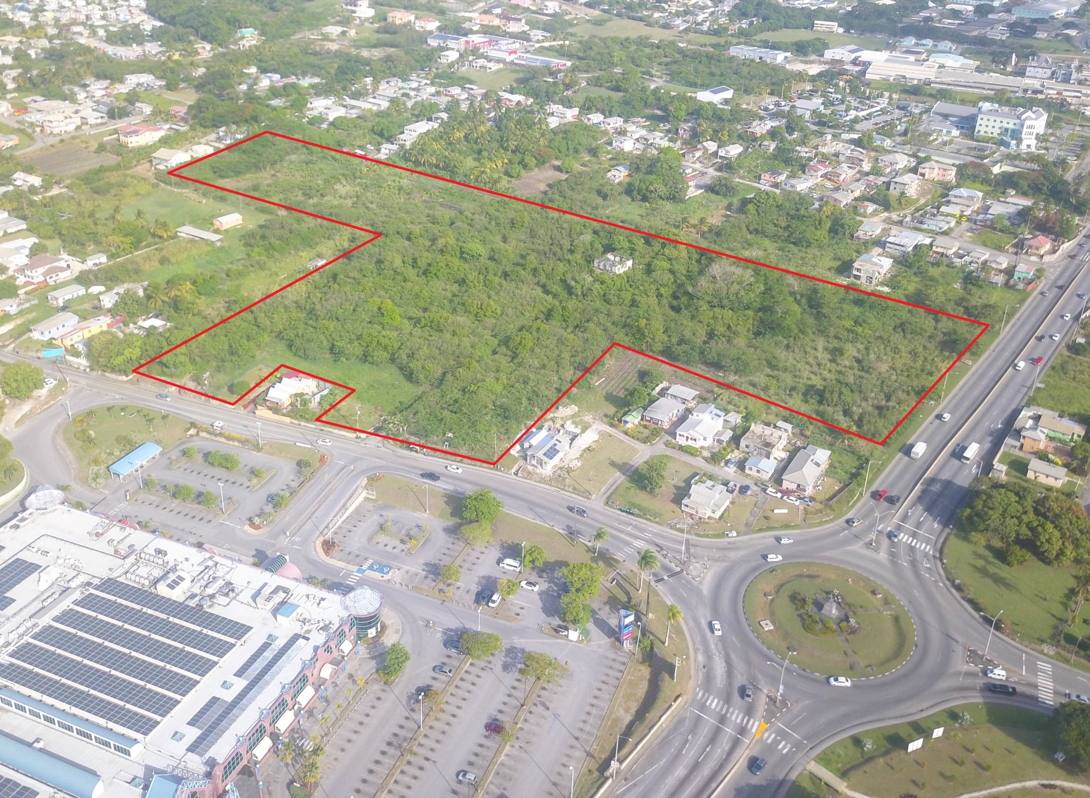 Located in Haggatt Hall with the entrance to the site opposite the well-known Sky Mall Plaza just off the Bussa roundabout on the Highway, is this large piece of land with Town Planning permission granted for development into partly commercial and partly residential use.