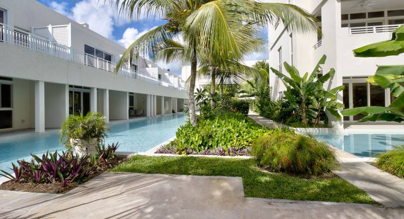 Harmony Hall is a new, gated condominium development in the South of the island, close to entertainment, beaches, shopping, restaurants, services, transportation and nightlife and a 3 minute walk to the beautiful Dover beach. The units all face inward to the view of the water garden.