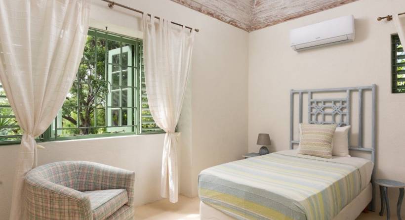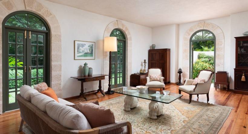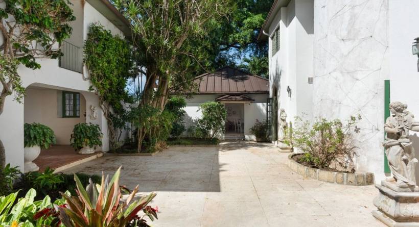 The main residence, with its three charming bedrooms, situated on the top floor, exudes character and warmth. The high, vaulted ceilings with exposed wooden beams and the carefully curated details invite a sense of nostalgia, yet the home is imbued with modern comforts. From the arched windows framing lush garden views to the stately staircase?recognized by the National Trust of Barbados?every corner tells a story.