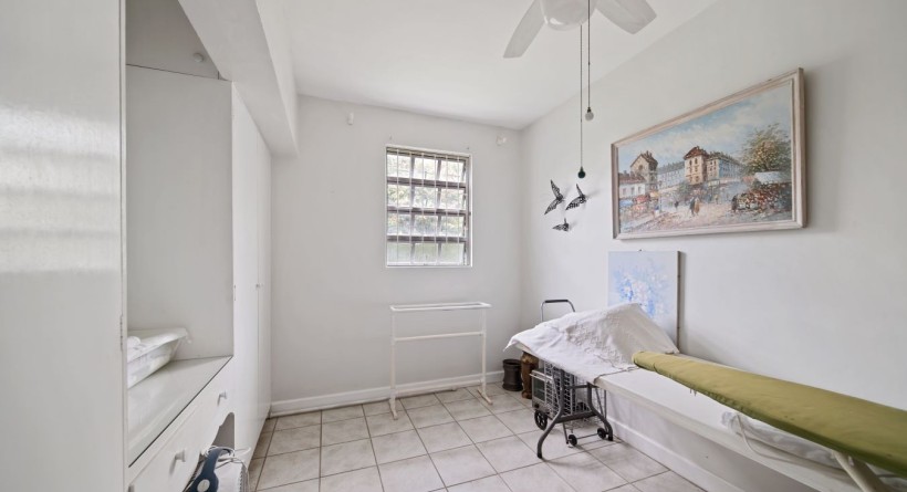 Multiple storage rooms and laundry area