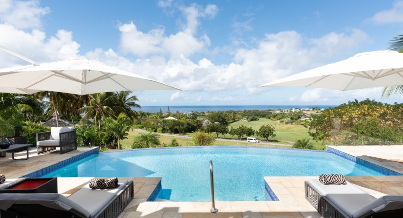 This beautifully designed home sits on the desirable Lancaster Drive - a ridge overlooking the 16th and 17th fairways of the world renowned Royal Westmoreland Golf Course, offering breathtaking views of the lush golf course and the shimmering panoramic Caribbean Sea views to the west and South. Designed for seamless indoor-outdoor living, Tranquility Place is the perfect retreat for those seeking privacy, luxury, and tranquility.