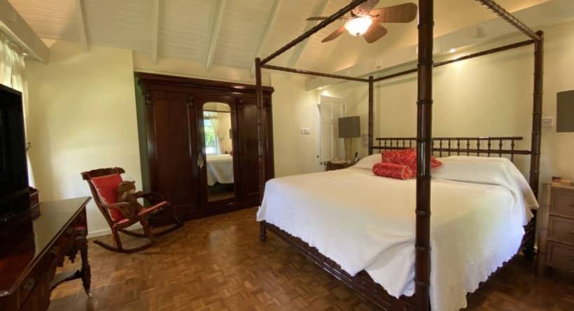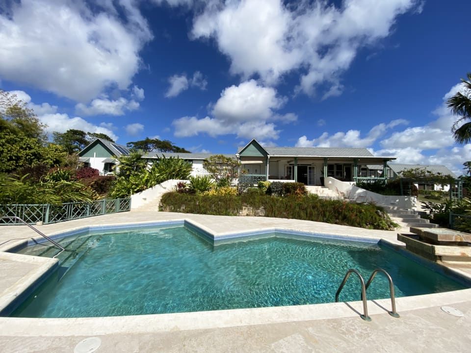Located on one of the most exclusive ridges overlooking Barbados' West Coast, this 4-bedroom villa with cottage sits on 1.7 acres of land with stunning ocean and island views to the west, and beautiful and contrasting gully and countryside views to the east. This premium lot is the largest and widest lot on this ridge with an impressive 225 feet of ocean view frontage. The ridge position is unique as it is surrounded by lands owned by Royal Westmoreland Golf Course and the gully along the eastern boundary provides a natural separation from any future development guaranteeing peace and privacy. The main home was built in the 70's and has been upgraded over the years. Stand out features include a beautiful, well-designed kitchen, grand indoor dining area and separate bar which open onto a spacious terrace which overlooks the pool with gazebo and panoramic ocean views beyond. The bedroom wing features three guest bedrooms and two shared bathrooms, and the primary bedroom boasts a large en suite bathroom and private study. There is also a one-bedroom guest cottage with living room and small kitchen, a separate laundry room and 4 bay fully enclosed garage with storage. Other notable features include a long welcoming driveway, gorgeous gardens with mature flowering and fruit trees, back up generator and water storage tanks. This ridge is home to a selection of the island's top luxury villas including Serenity, and Martello House. While the property is very well maintained it is ripe for upgrades and redevelopment into an exceptional home. This is a fantastic and truly unique spot with exceptional views.