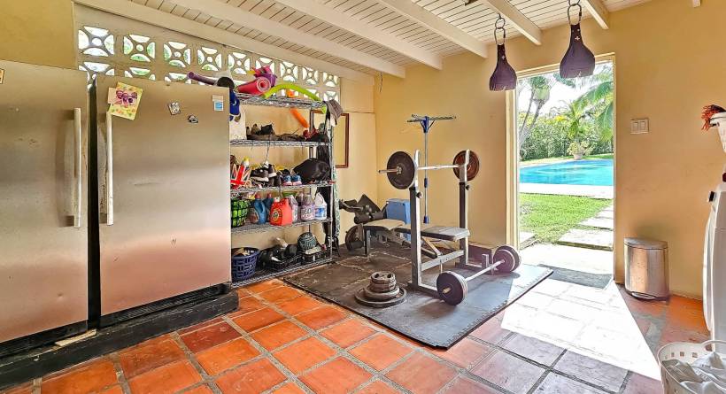 Step outside and you'll discover the real jewel of this property – the exceptional outdoor living space. Spend your days lounging by the large swimming pool, or relax on the elegant sundeck. The well-manicured gardens are a tropical paradise, filled with a variety of lush fruit trees that add both beauty and a touch of island flavor to the landscape. For ultimate relaxation and socializing, the outdoor wet bar is the perfect spot to enjoy refreshments with friends and family while taking in the serene surroundings.