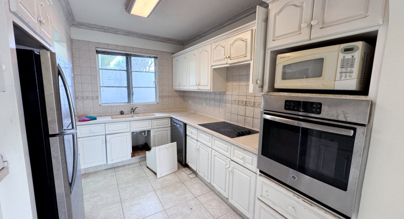 Located in a secure, gated community near Warrens, this two-bedroom, two-and-a-half-bathroom townhouse offers strong renovation potential and solid investment value. The open-plan ground floor includes a living and dining area that opens onto a covered patio and shared garden space. The kitchen, laundry area, and storage room require updates.