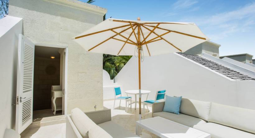 The lower level is home to the spacious living & dining area with a large kitchen and full bathroom. The outdoor terrace holds nice seating space & more dining to enjoy meals al-fresco. You also have a private pool with lounge chairs to enjoy the sunshine & go for a dip. The second floor consists of 2 en-suite bedrooms with ocean views. The third floor hosts the third bedroom with an attic style roof. This floor is also home to your private roof deck where you can enjoy your morning coffee or evening sundowner while admiring the Blue Waters.