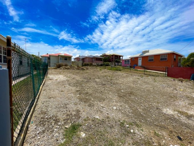 A square land lot measuring 4650 square feet (gross) in an established area. Many houses of varying sizes surround the lot. Good size for a first home. Not far from Six Roads and the Grantley Adams International Airport.