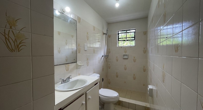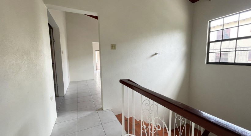 Located in a private cul-de-sac in the popular neighborhood of Rowans Park this two-story home offers 4 bedrooms and 3.5 bathrooms with two covered car ports. Rowans 183 is a well-built family home. The main entry leads from a small front patio into a large open plan living, dining and entertainment room which offers high ceilings and natural light. From the living room is a side patio overlooking the garden. All three bedrooms are located on the windward side of the home and offer large cupboards with ample storage. The main bedroom has an en-suite bathroom whilst the two other bedrooms share a bathroom. The kitchen is at the rear of the property which also has an internal stairwell that leads to another bedroom and en-suite bathroom. Due to the natural lay of the land this level can be easily accessed by driving into either of the two car ports. Adjacent to the car ports is a laundry room and powder room. To the rear of the property is additional space and garden. This home would benefit from some modernization and new kitchen. It is an excellent opportunity for a large or growing family that could also benefit from the additional bedroom downstairs as an office, salon or small gym.