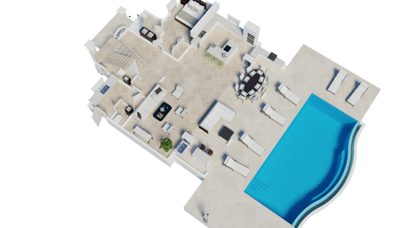 Accessed through electronic gates, the villa benefits from open concept living, with light and airy spaces throughout, and luxury contemporary finishes. The fully integrated kitchen extends the comfortable living area, while dining is enjoyed al fresco under the large covered terrace. There is also a fully air-conditioned room or office for your convenience.