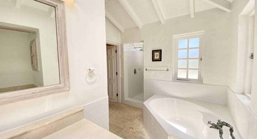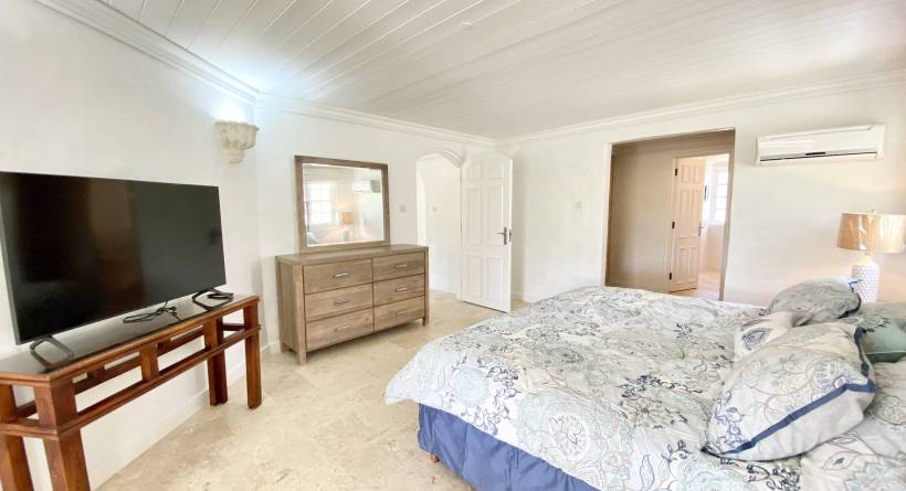 Master Suites: The upper floor houses two large master suites with private balconies, ensuite bathrooms, and ample storage space. Both suites are designed to offer maximum comfort and privacy, with stunning views of the lush gardens and the Caribbean Sea.