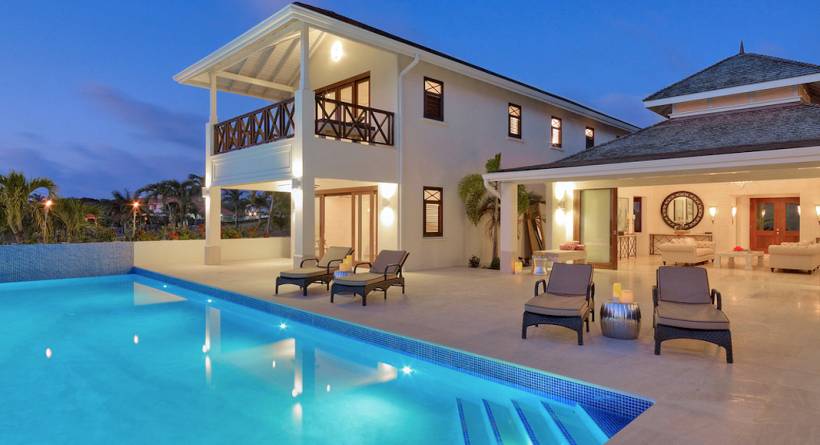 The Calijanda Estate features beautiful uninterrupted views along the West Coast with its azure sea and clear blue skies. This substantial property is approached along a majestic avenue of Royal Palms. Sand Dollar presents over 8,000 sq. ft. of pure style and luxury and is designed by London based architect Alistair Downie (Harper Downie) and built by Guy Counter Berridge, an English bespoke property developer who has made Barbados his home since 2004. The open plan design is both spacious and practical, featuring 6 en-suite bedrooms, stunning kitchen, dining pavilion, numerous courtyards and balconies, a media room, study, central living pavilion, provision for a gymnasium, garage and 15M infinity-edge swimming pool all complimented by and nestled within over 0.5 acres of indigenous landscaping, an integral aspect to the architectural design of the property. Additionally there is a spacious 2-bedroom/2-bathroom guest apartment at garden level which provides the owner a degree of privacy. No time, expense or attention to detail has been spared in creating this breathtaking home. Total luxury comes as standard without the ongoing high running costs often associated with second homes in the Caribbean. Energy saving measures include passive ventilation techniques to encourage airflow and reduce power consumption, large overhanging balconies to reduce solar heat gain and low energy fixtures and fittings. The finest materials, craftsmanship, design and logic have created what is undoubtedly one of the islands premier residences.