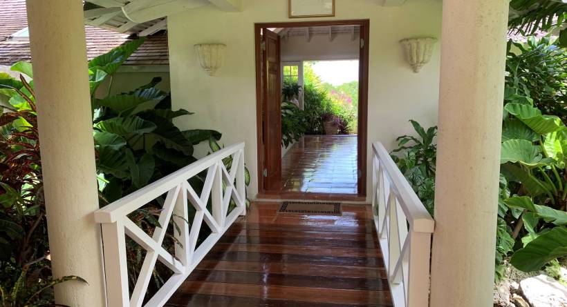 Dining here is a unique experience, soothed by the hushed tones of the stream flowing gently through the area. For casual meals and breakfast, there is a dining terrace which opens onto the pool and BBQ area. Access to this terrace is through the wet bar which adjoins the large kitchen and service areas. To the left of the entrance hall, you can explore the bedroom wing which includes three double bed guest rooms each with en suite bathrooms, linked by an intimate terrace and commanding views of the lush tropical garden.