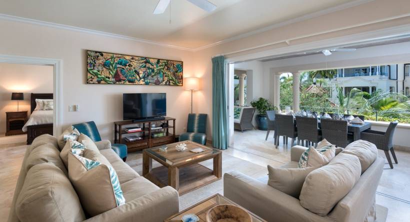 Schooner Bay is one of the most luxurious beachfront properties on the west coast. The development is set on a secluded beach in a wonderfully picturesque setting and the apartments have been completed to the highest standards. The landscaped grounds include a free-form swimming pool in glorious gardens with direct access to the beach.This completely refurbished luxury apartment is named after a legendary sea creature of the Caribbean, \'Lusca'. The apartment has access to a large communal swimming pool and is just steps away from an expansive and deserted sandy beach. The living room is an open complex which opens up onto a patio overlooking the pool and beach. There is a laundry room, a fully equipped kitchen with brand new stainless steel appliances. There are three luxurious bedrooms which include air conditioning and private en-suite bathrooms.While staying at Schooner Bay you can enjoy a range of activities which include relaxing in the jacuzzi, visiting the gym and swimming in the free-form pool or the tranquil waters of the Caribbean Sea. The poolside and beach have sun beds exclusively for Schooner Bay use. Watersports may be enjoyed by arrangement with Cobblers Cove Hotel, a short walk away, which also boasts an excellent bar and restaurant.