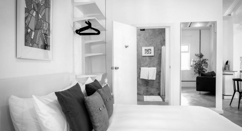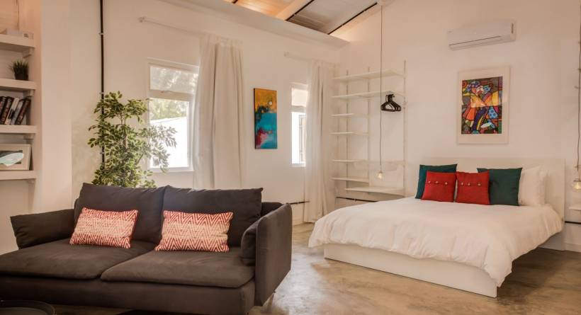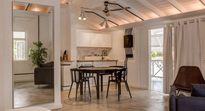 All the apartments at The Moorings are decorated in similar fashion. The polished concrete floors and wet bathroom add a mix of loft style with casual chic living. The space is well laid out and suitable for a couple or a single traveler looking for a budget-friendly stay right on the beach.