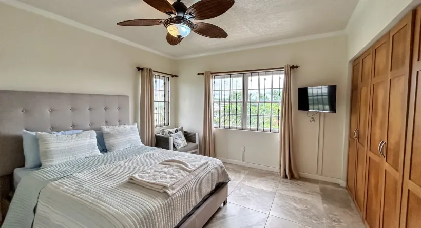 This beautifully furnished 3-bedroom, 2.5-bathroom standalone home is located in the prestigious Millennium Heights community—one of Barbados’ most desirable residential enclaves. Designed for comfort and contemporary living, the home features an inviting blend of neutral and earthy tones, complemented by travertine flooring and elegantly finished stone-tiled bathrooms.