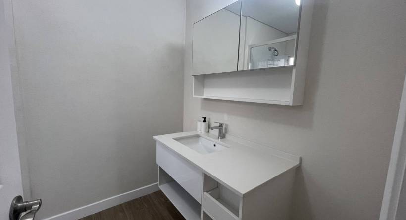 Experience the comfort of this fully air-conditioned home, featuring a spacious open-plan living and dining area filled with natural light. The carefully designed kitchen offers sleek countertops and modern appliances, making cooking a breeze. Enjoy your meals at the six-seater dining table situated alongside the kitchen. For added convenience, the home comes with a laundry cupboard equipped with a washer, dryer, and sink. The covered backyard patio is ideal for outdoor dining. Bedrooms 1 and 2 share a bathroom and are furnished with queen-sized beds, side tables, and sizable closets. Bedroom 3 features a queen bed, a walk-in closet, and an en-suite bathroom.