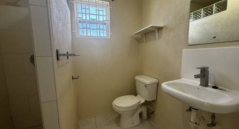 Coverley Terrace is a quiet residential development within close proximity to our international airport and major highway. This unfurnished downstairs apartment has an open plan living, dining and kitchen area, with the kitchen having built in cupboards. The single bedroom has built in closet space and chest of drawers. The unit also has an additional room which also has cupboard space, the bathroom has a shower. There are ceiling fans throughout and an outdoor allocated laundry area with space for a washing machine and a convenient washing sink. All windows have security grillls and insect screens. There is a small wrap around patio and grounds with drying lines. There is parking for one vehicle on the property.