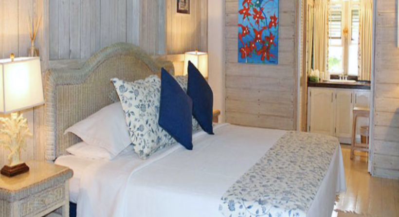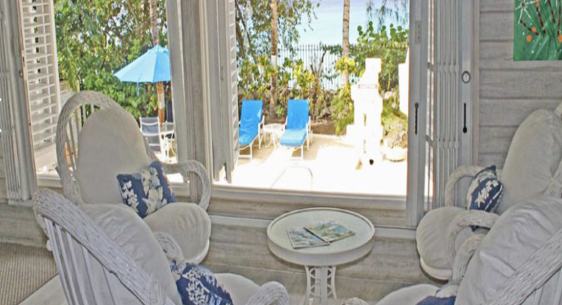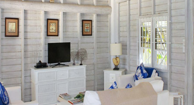 Dudley Wood is located in St. Peter, on the very popular Gibbs Beach. This charming chalet style beach house, is built of bleached timber with a shingle roof and has a unique rustic ambiance. You enter the villa at mid level over a small wooden bridge, which leads from the off road parking area into the main living area. This level and the upper floor are built entirely of wood, with wooden floors, walls and exposed pickled pine ceiling. An informal sitting area with Cable TV and DVD has been recently decorated to provide laid-back comfort.