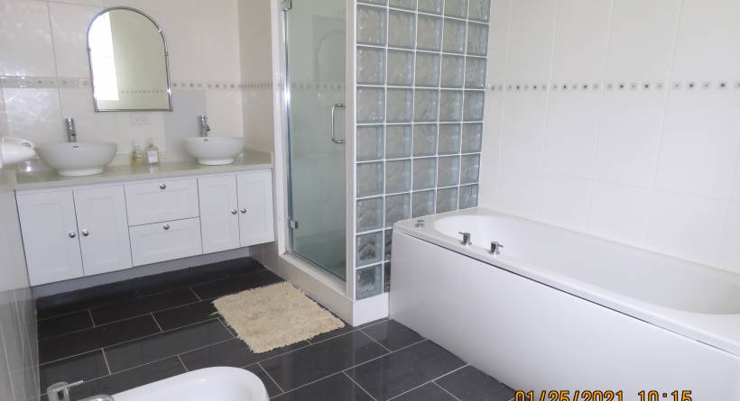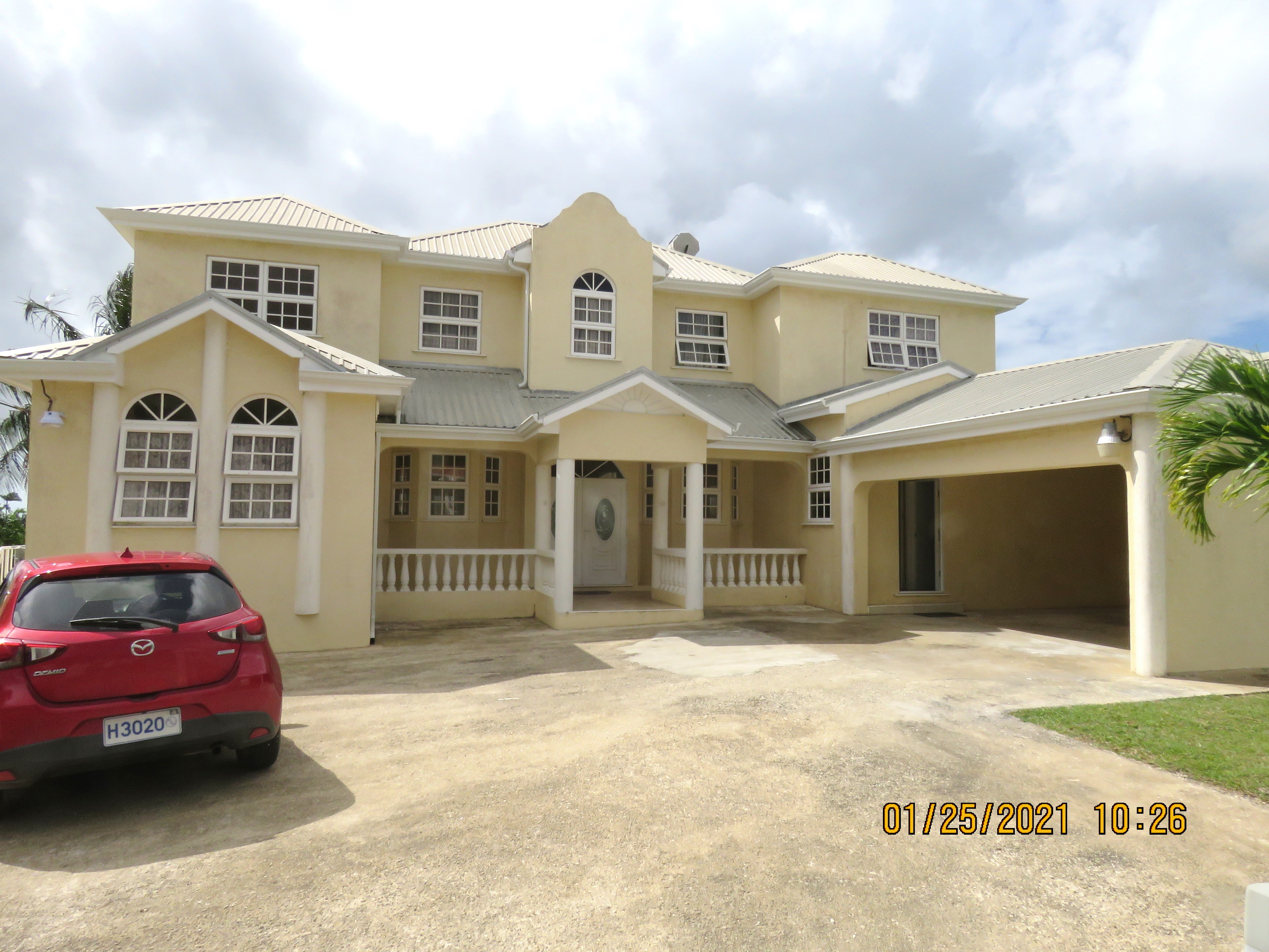 Large, modern, 2 story house in good conditioned and offered unfurnished, but does includestove, dishwasher, & oven. On the main level, there is a living room, dining room and large kitchen with a laundry and 1/2 bath. On the upper level are three bedrooms, and 2 baths. The Master suite is very spacious with the Jacuzzi tub, separate shower, bidet and double sink vanity. There is a large porch on the lower level and a balcony on the upper level with country views - this house is cooled by beautiful country breezes. There is a 2 car garage, yard is fully enclosed with an electronic gate, water tank for back up potable water and another in-ground tank for irrigation. Offered with kitchen appliances, except refrigerator. Owners have a separate adjoining apartment which is for their sole and occasional use, when they are on the island. OFFERED AT BDS$3,000. per month, inclusive of garden service. will, consider one small dog.