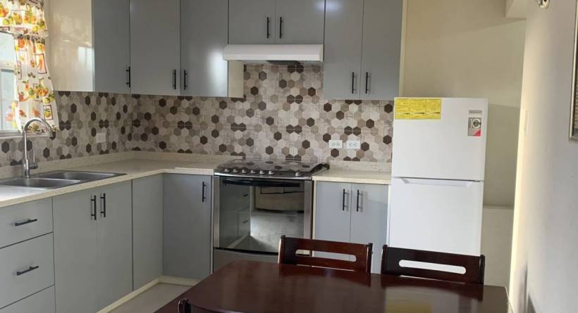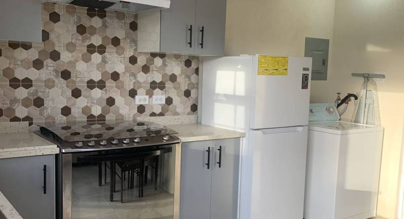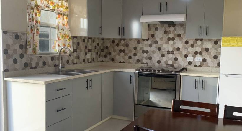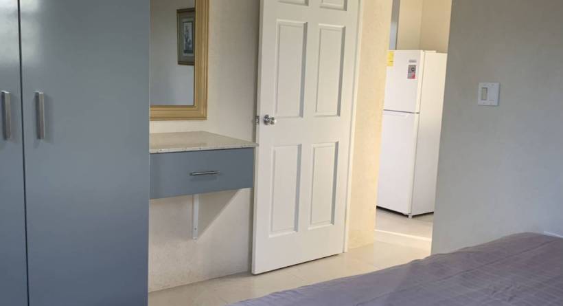 Lear's Court is a small residential development, centrally located in the Jackman's area close to major highway and the Warrens Commercial hub. The downstairs apartment is attached to a 2 Storey main house which is occupied by the owner. The unit is recently completed and has never been tenanted. The open plan living/dining and kitchen area is cozy and outfitted with sofa, 4 seating dining, there will also be a wall mounted television. The kitchen has built in cupboards and is ouffitted with major appliances, 2 door refrigerator, gas stove with hood, there is also a laundry area just off the kitchen with a washing machine (drying lines are provided in the yard area. The bedroom has built in cupboards, will be air-conditioned, and has a queen sized bed, the single bathroom is outfitted with a shower.