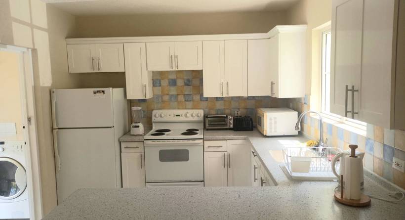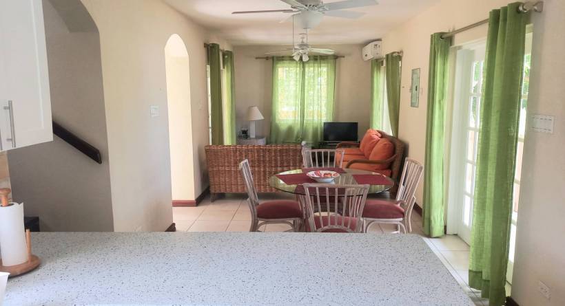 This lovely fully furnished townhouse comprises of 2 bedrooms and 2.5 bathrooms and is located in a desirable residential community. It is ideal for a small to medium sized family. On the ground floor there is an open plan living, dining and kitchen area as well as a laundry room and a powder room. Two double French doors in the living and dining areas open onto a covered patio with garden views. The kitchen is of modern design with Decoran countertops. The upper level comprises of two en-suite bedrooms with walk-in closets. One of the bedrooms is complemented by a covered balcony with garden views. The unit is one of two in a block of townhouses in the complex where there are a two blocks comprising of two townhouses each. The grounds are tastefully manicured with a mixture of grass and plants and is fully enclosed. The townhouse is located across the road from the southern end of Pendry Barbados (formally Port Ferdinand Luxury Marina & Residences) on the West Coast. It is within walking distance to the beach and is in very close proximity to Speightstown. Other features include: air conditioning and ceiling fans in both bedrooms; air conditioning and ceiling fans in the living and dining areas; Internet and cable TV ready; and carport. No Pets allowed. Garden maintenance is included. The inclusion of utilities in the rental rate is optional. Available from 1st May, 2026.