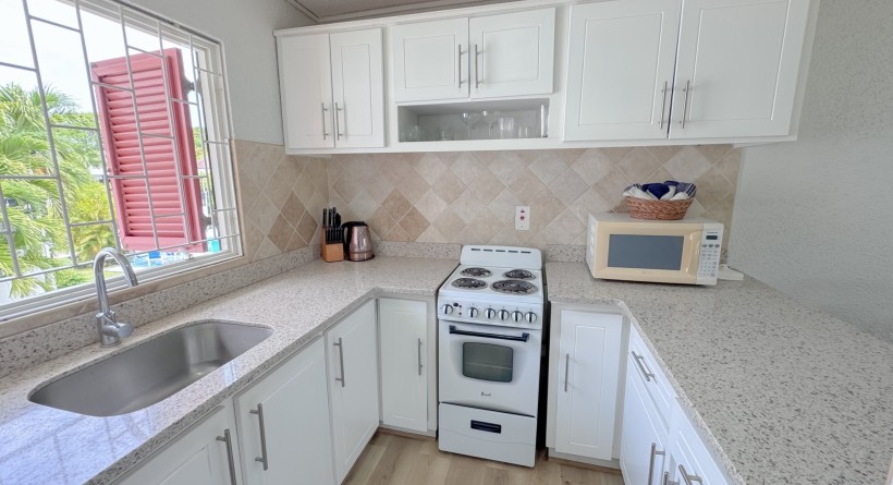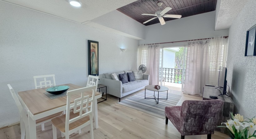 This updated 1-bedroom, 1-bathroom upstairs condo is located in Rockley Golf & Country Club on Barbados’ South Coast. Fully furnished with modern finishes, it features a kitchen with granite countertops, open-plan living, and a breezy patio. The unit includes A/C, laminate flooring, and access to a large pool, tennis courts, golf course, laundry, and clubhouse. Minutes from beaches, shopping, and restaurants, it’s ideal for comfortable living or investment.