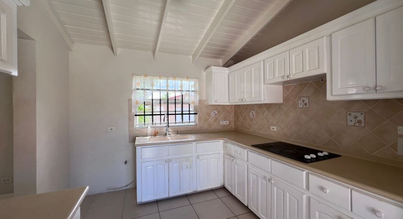 Single story 3-bedroom, 2-bathroom unfurnished house located close to The Walk and other amenities. The house is fully enclosed, with a front and back garden. The kitchen has a built in stovetop and oven, and there is a separate laundry room with additional storage. The living and dining space is bright and airy with high ceilings and ceiling fans. The three bedrooms all have air- condioning, with the smaller two rooms having built-in closets and sharing a bathroom. The main bedroom has an en-suite bathroom, linen closet and a walk-in closet. There are security grilles throughout, a front and back patio, a water tank and solar water heating. Asking price includes Flow Wi-Fi and once monthly garden maintenance.