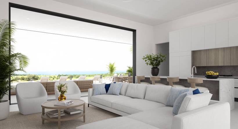 The Grand Fairway Villas feature a modern, open-plan design spread over an impressive 4,405 sq ft. As you step into the grand foyer, you’re greeted by a stylish, contemporary kitchen and a spacious great room that flows seamlessly together. The great room is a highlight with its magnificent 19 ½ ft ceilings, allowing the freshest, purest air to breeze through and complement the breathtaking views. Both covered and uncovered verandahs offer a front-row seat to the crystal-clear golf and ocean vistas.