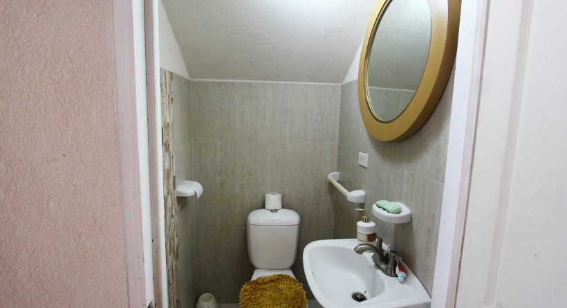 Powder room under stairwell
