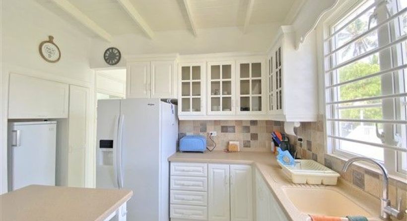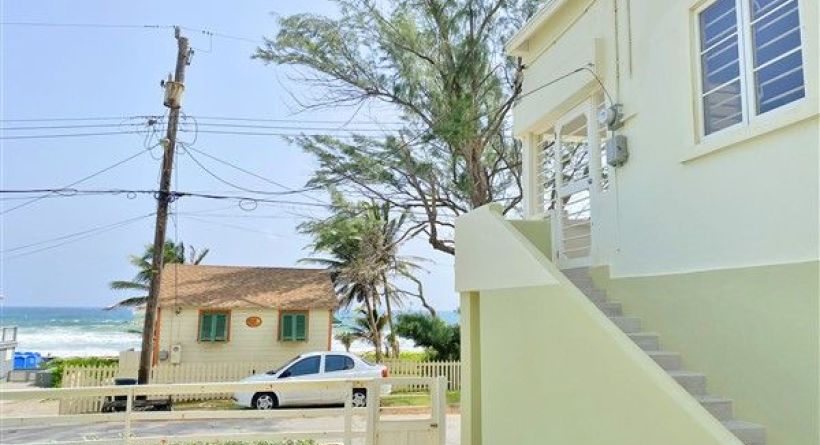 A beautifully renovated 3 bed, 2 bath upper level unit, perfectly located near to “round rock” on Cattlewash main road, right across from the beach. The open style kitchen and living space leads onto a spacious front patio with built-in bar, offering great views of the Atlantic Ocean and a steady breeze. The unit is also fully wheelchair accessible with a shared pool.