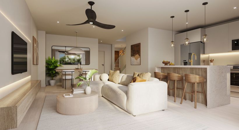 Ayana presents an exclusive new-build community of 16 thoughtfully designed units, blending contemporary Caribbean elegance with the natural beauty of Barbados. This development includes 13 spacious 3-bedroom, 3-bathroom units spanning 1,809 sq. ft. and 3 expansive 4-bedroom, 4-bathroom units at 2,150 sq. ft. Prices start at BDS$1,390,000 pre-construction, with fully equipped units available up to BDS$1,790,000, inclusive of high-quality appliances.