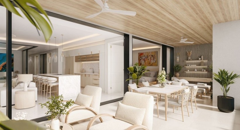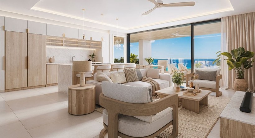 At Bijou, every home is designed as a gateway to the Caribbean Sea. The living spaces feature an uninterrupted flow, where wide glass doors dissolve the boundaries between the elegant interiors and the expansive private patios, framing the ocean like a living canvas. This seamless connection extends to the private sleeping sanctuaries, which are masterpieces of tranquility adorned with warm wood tones and exquisite finishes. Each bedroom is complemented by a luxuriously appointed ensuite bathroom, blending refined design with indulgent comfort to ensure every morning begins with a view of the horizon and every evening ends in quiet elegance.