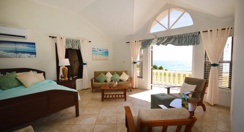 On the second floor, are two spacious bedrooms, each with seating areas and 5 large windows overlooking the sea. The Master bedroom enjoys views from a back balcony and a large front balcony with the most stunning view of scenic Bottom Bay. Just off the master, is a large walk-in closet and down the hall, an ensuite bathroom with a jacuzzi and shower.