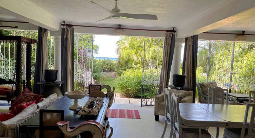 The home is a serene retreat by the sea, featuring four bedrooms; three upstairs and one on the ground floor, all fitted with air conditioning and mosquito screens for comfort. Two of the upstairs bedrooms and the ground level bedroom are en-suite, providing convenience and privacy for guests.