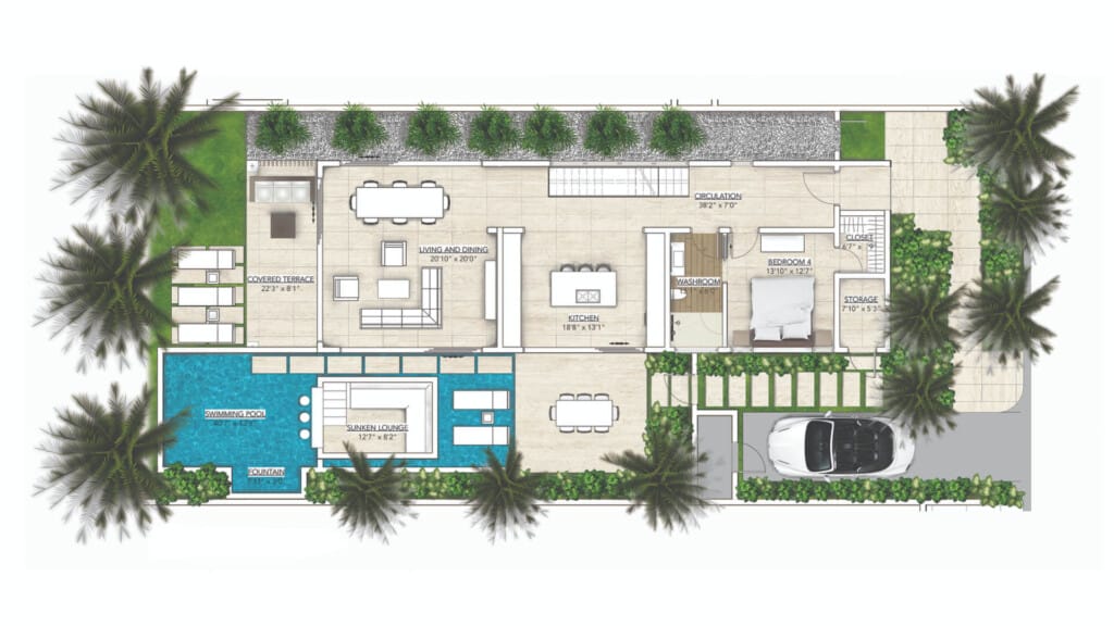 Each villa boasts a private swim-up lounge pool and a stunning sky terrace, offering the perfect blend of elegant coastal living. These spaces are designed to invite both relaxation and entertaining in style.