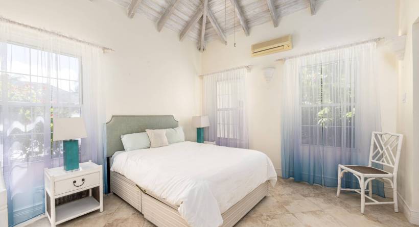 The villa is fully enclosed with manicured gardens and beautiful flowering plants and trees.
