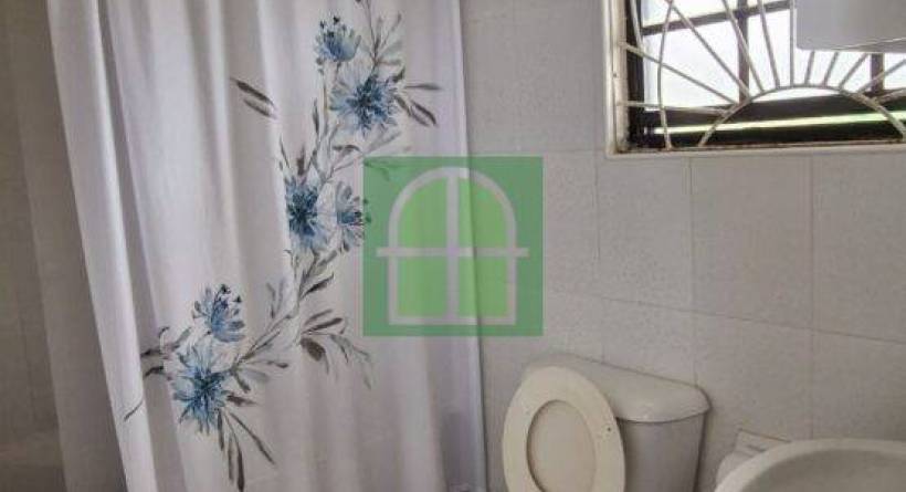 Downstairs is a two-bedroom, one-bathroom apartment, open-plan living and dining room.
