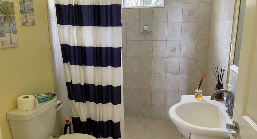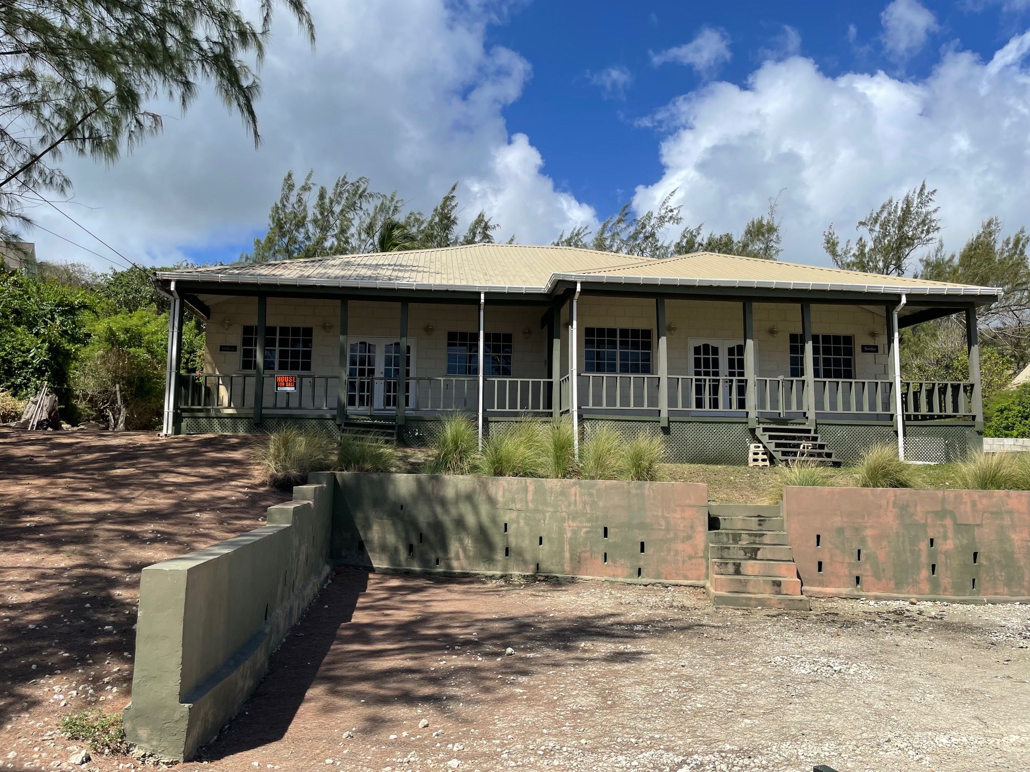 The dewelling consists of 6 bedrooms 2 baths, in a duplex configuration i.e. two 3 bedroom apartments each with their own kitchen, living/dining room and porch. It has a view of the ocean across the street and is ideal as a vacation home, or live in one side and rent the other.
