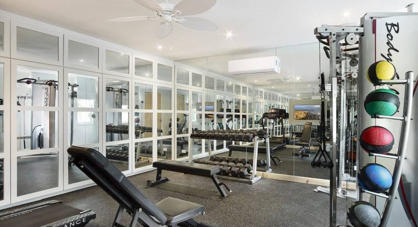 Use the eclectic rope handrails. These lead you to the outdoors, a covered garage and the gym. You know you have arrived at the gym marked by a striking photo of Muhammad Ali. The perfect “fight for it” inspiration. The gym has a TV, free weights and yoga mats. There are also exercise balls, treadmills and more.