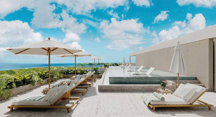 24 Hour Security, Bar, Barbecue Grill, Beach Chairs, Beach Club, Elevator, Furnished, Garden, Gated Community, Gym, Modern, Ocean View, Open Plan, Parking, Roof Deck, Spacious, Storage Locker, Wellness Room