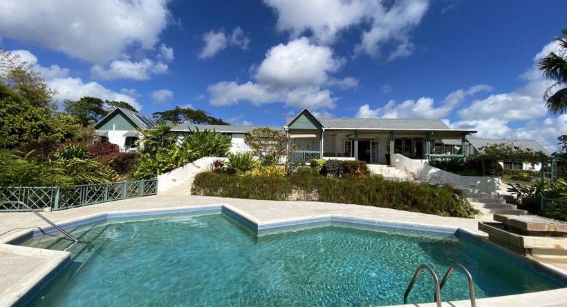 For Sale - Lancaster Heights #5, Barbados. This stunning 5-bedroom, 4-bedroom villa is being offered for sale unfurnished. The property sits on an elevated lot offering over 74,000 square feet of land that allows for stunning ocean and country views across the West Coast of Barbados. The property has 4-bedrooms in the main house and a full service 1-bedroom guest cottage.